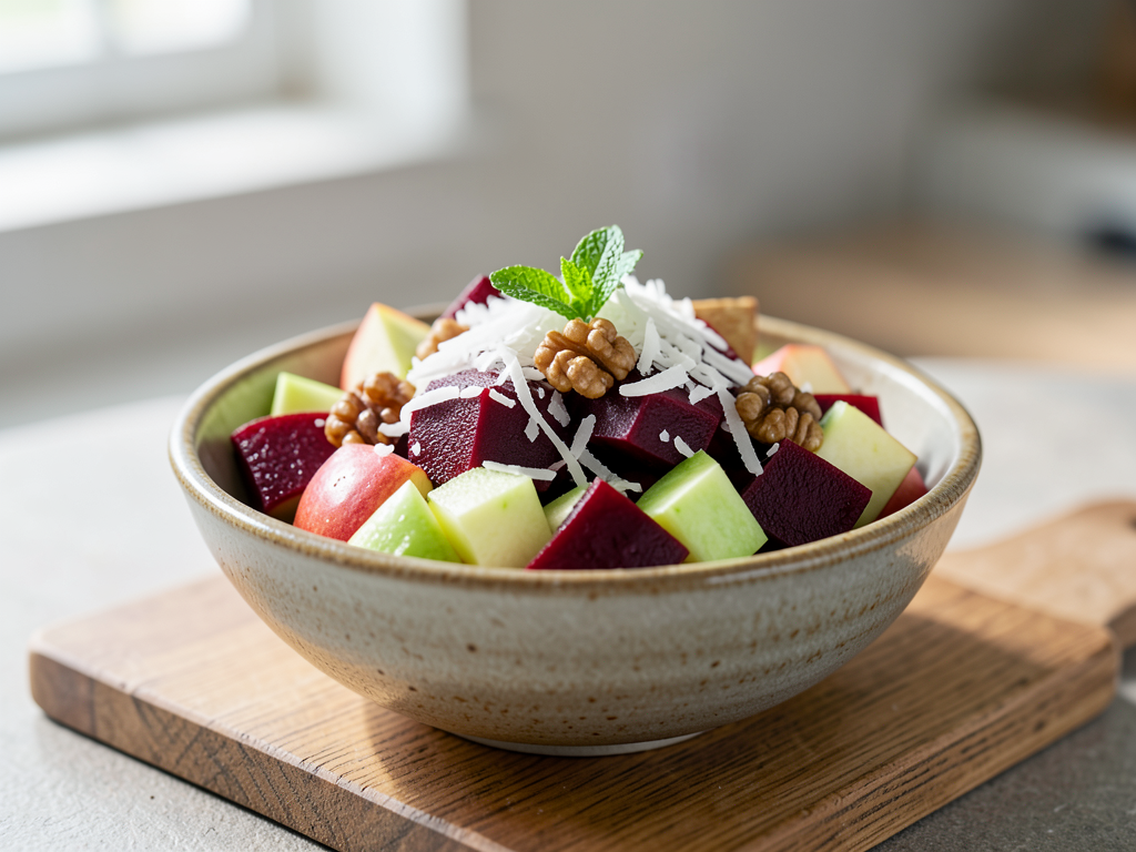 Apple and Beet Fruit Bowl with Coconut Flakes