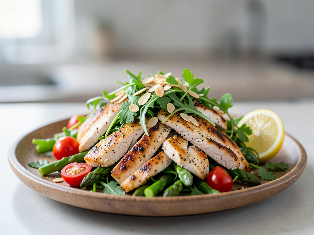 Black Pepper Chicken Salad with Arugula and Asparagus
