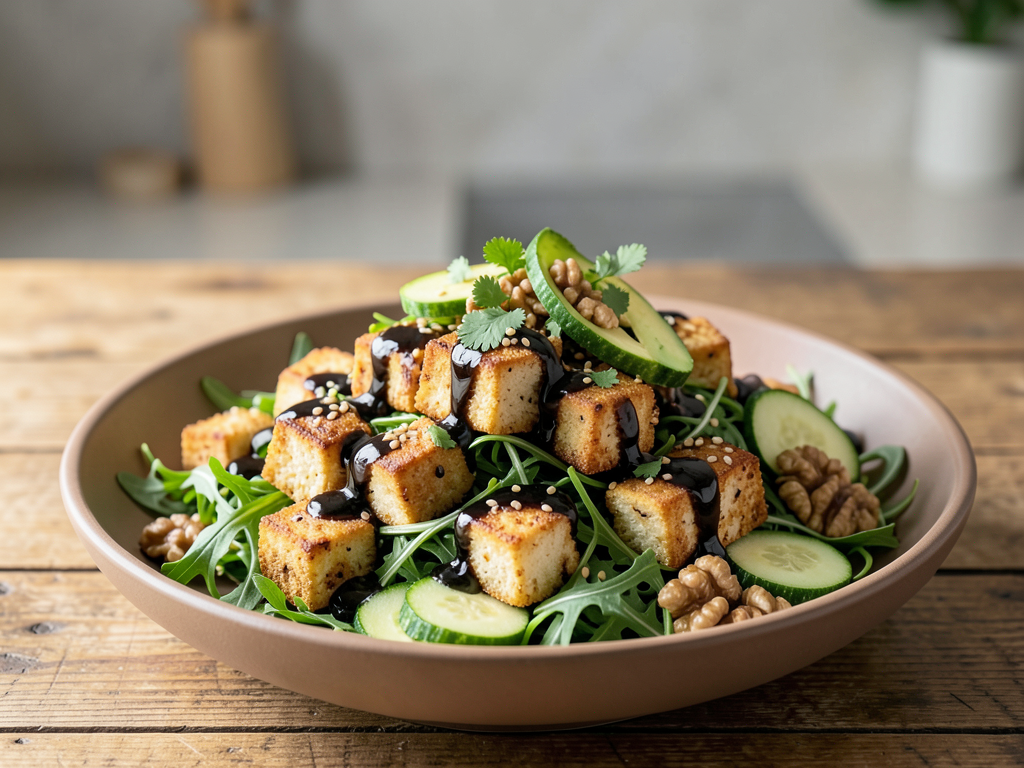 Black Pepper Tofu Salad with Arugula and Zucchini