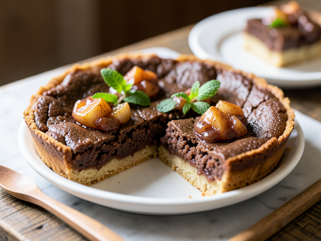 Chewy Coffee Pie with Apple Compote