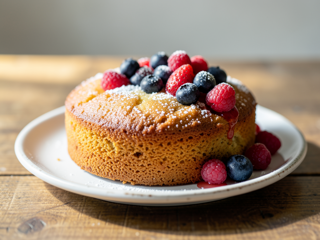 Chewy Honey Almond Cake With Berries Recipe