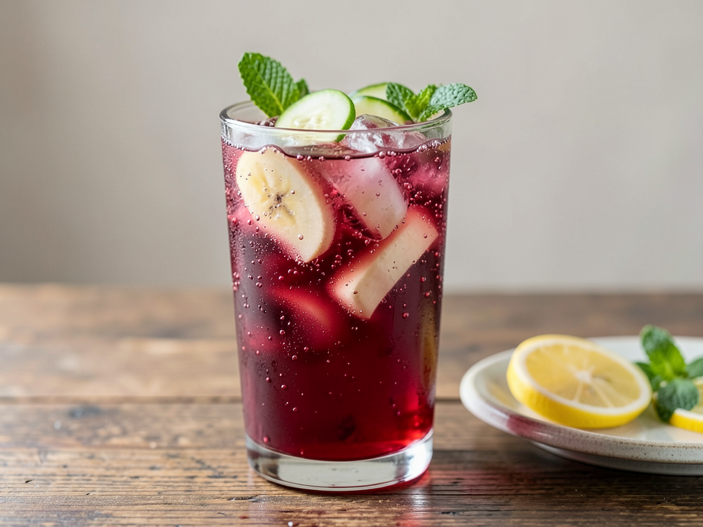 Cooling Pomegranate and Banana Iced Tea with Honey