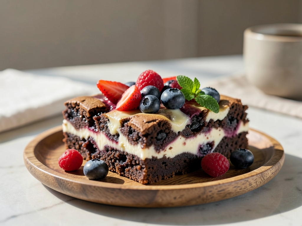 - Drop spoonfuls of the cream cheese mixture over the brownie batter and swirl gently with a knife to create a marbled effect.