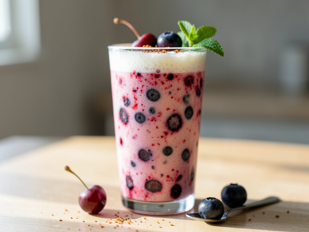 Creamy Cherry and Blueberry Herbal Tea with Date Syrup