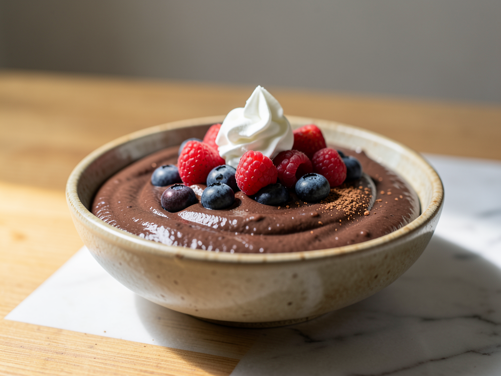 Creamy Chocolate Chocolate Pudding with Berries
