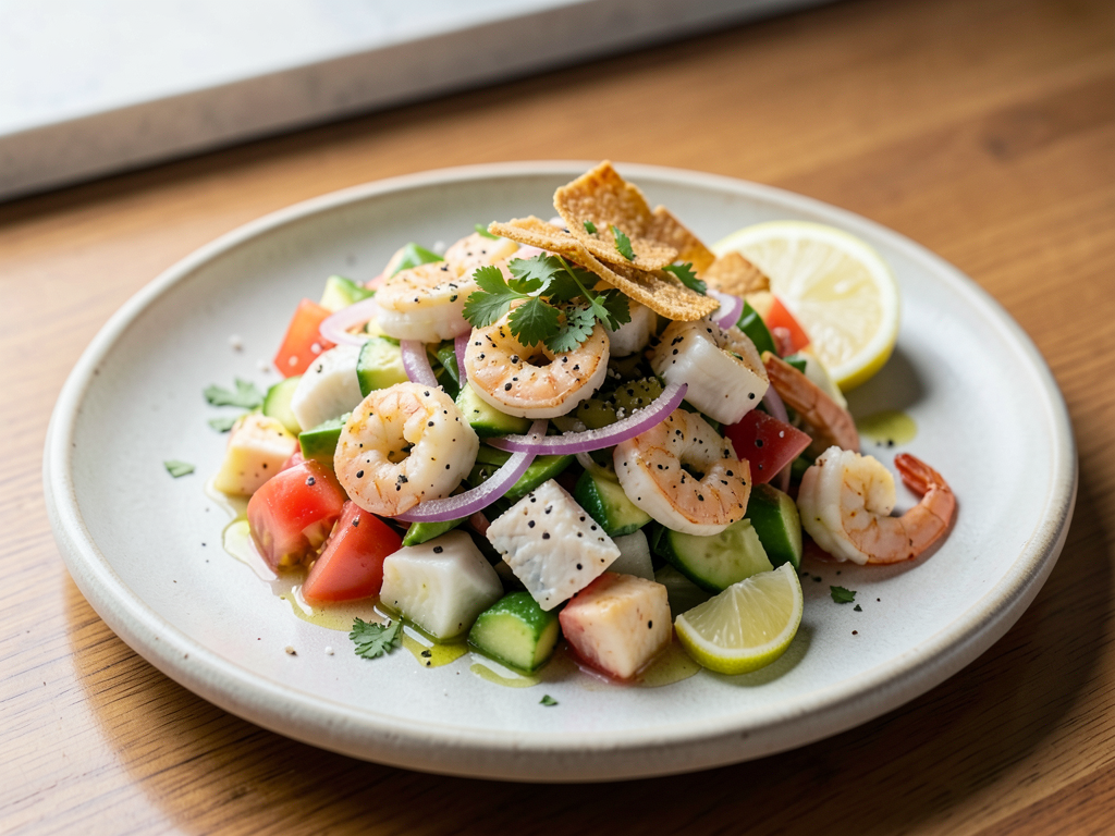 - Pour the fresh lime juice over the seafood and let it marinate for about 15 minutes to allow the flavors to meld.