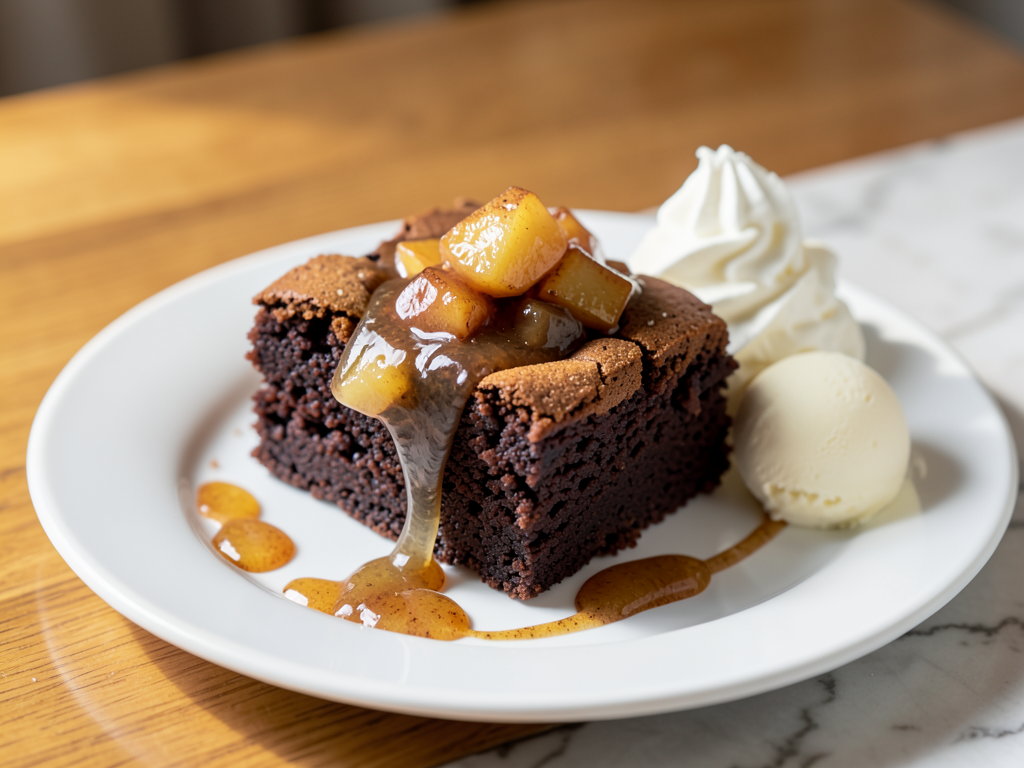 Crunchy Vanilla Bean Brownie with Apple Compote