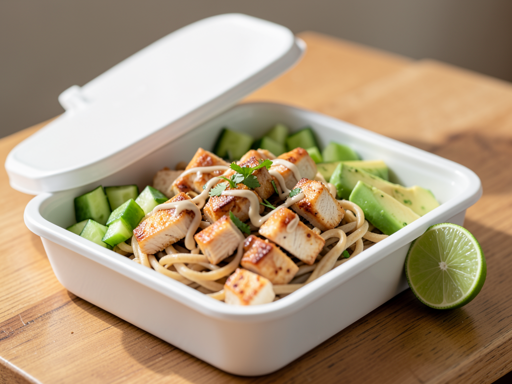 - Divide the pasta mixture into two bento boxes. Drizzle tahini over each serving and top with chopped cilantro.