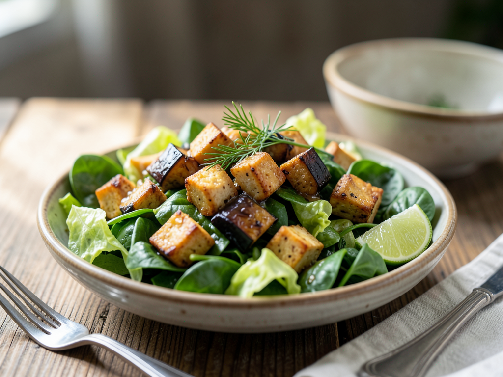 Cumin Lime Tofu Salad with Eggplant and Spinach