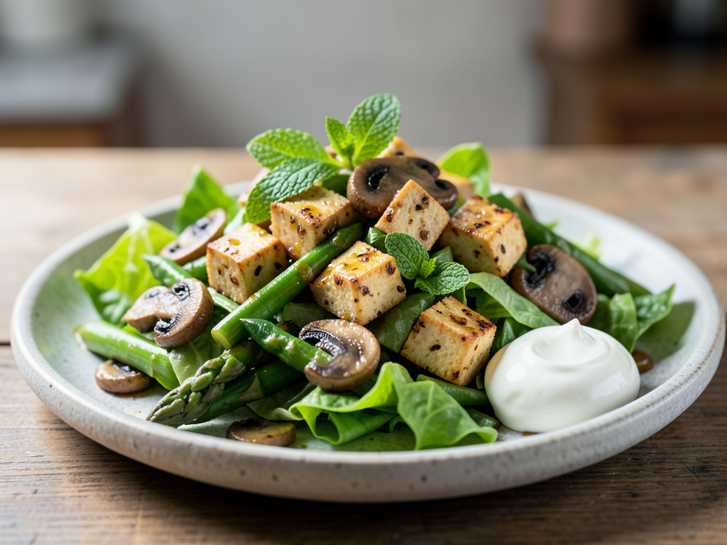 Cumin Lime Tofu Salad with Mushrooms and Asparagus