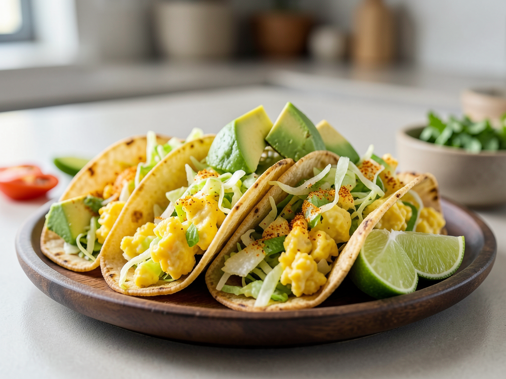 Indulge in the delightful flavors of warm taco shells filled with fluffy eggs, crunchy cabbage, and creamy avocado, all enveloped in a fragrant curry spice sauce. These tasty tacos are perfect for a summer meal, served with a fresh side salad and a zesty lime wedge to brighten each bite. Feel free to mix and match your toppings based on your mood—these tacos are wonderfully versatile!