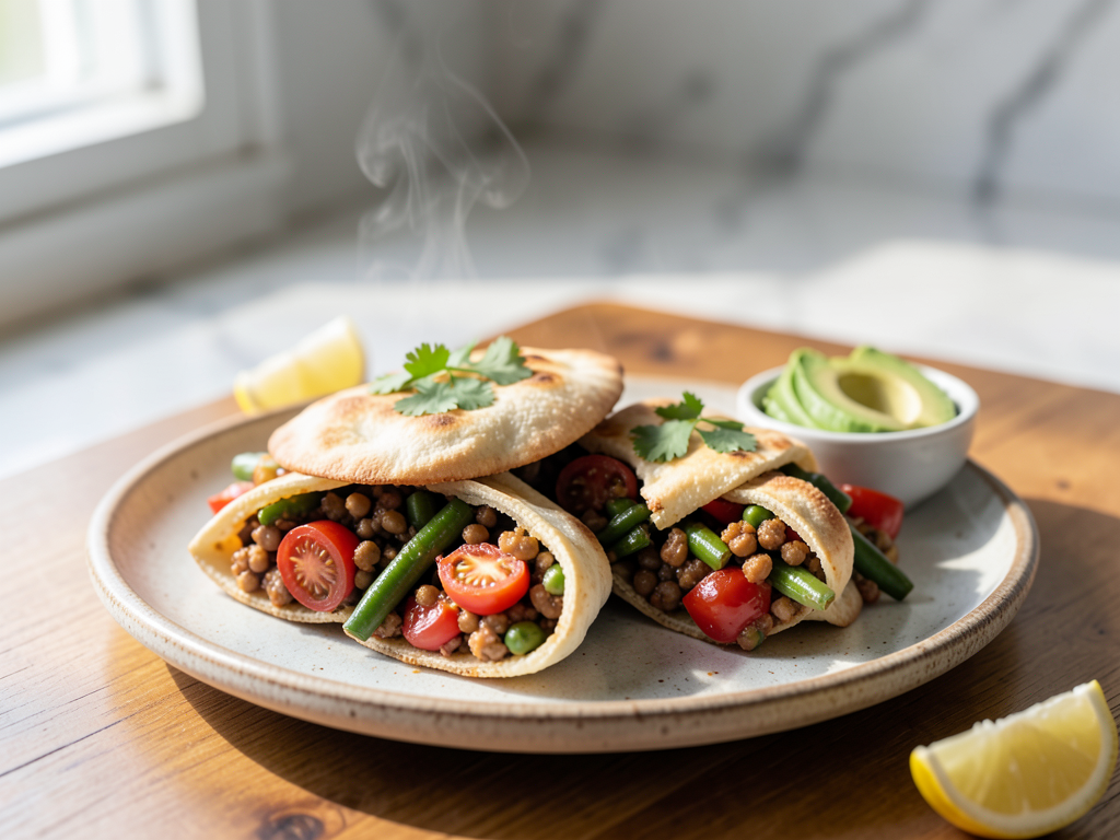 Curry Spice Lentils Stuffed Pita with Tomatoes