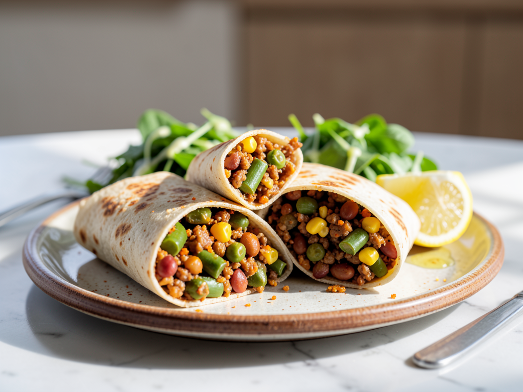 Indulge in a deliciously warm wrap that combines hearty lentils, tender green beans, and sweet corn, all enveloped in a fragrant curry spice sauce. This delightful dish is perfect for summer, and you can easily modify the ingredients based on your preferences. Serve it cut in half alongside a refreshing side salad and a bright lemon wedge for an uplifting meal. Enjoy the creativity this recipe offers – get adventurous with the spices or add your favorite veggies!