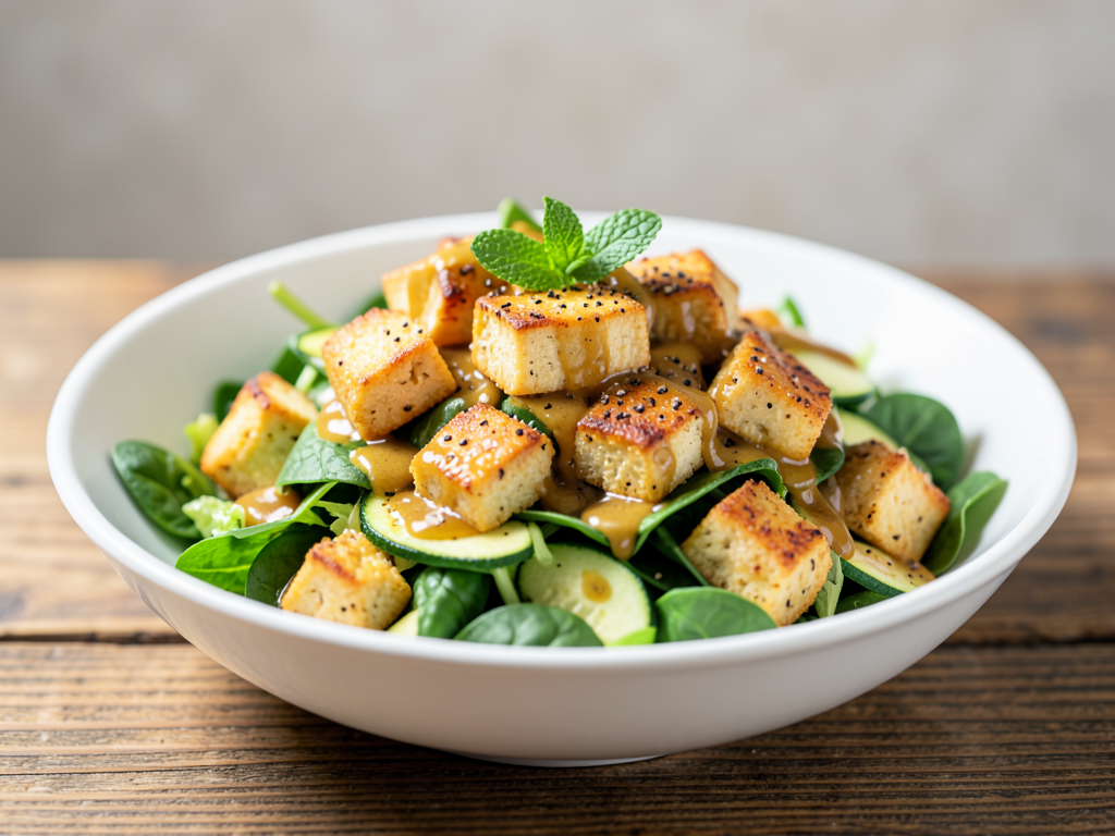 - Once the tofu is ready, add it to the salad bowl.