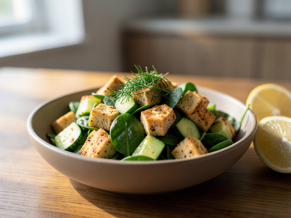 Curry Spice Tofu Salad with Zucchini and Cucumber