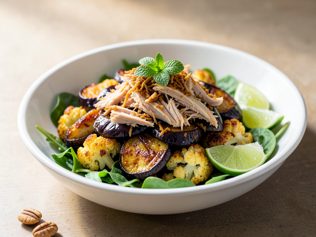 Curry Spice Turkey Salad with Eggplant and Cauliflower