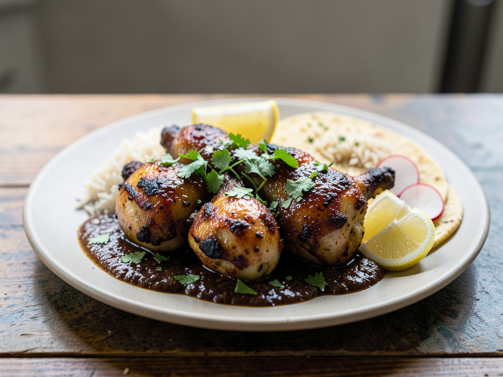 Extra Herbs Puebla Chicken Mole Style with Lemon Wedges