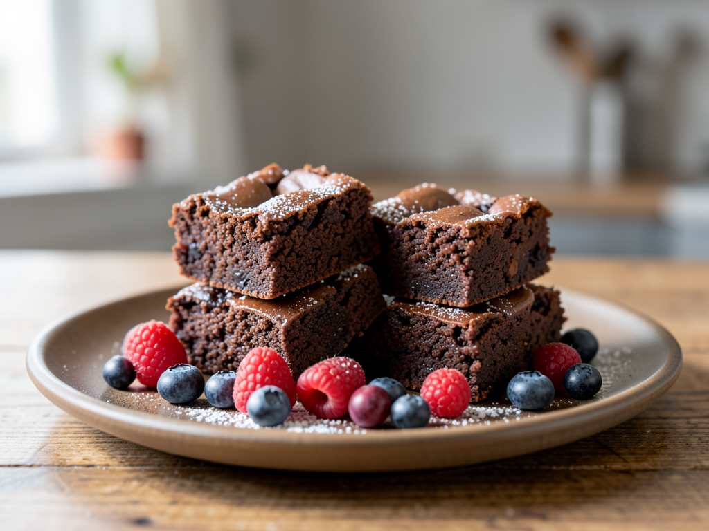 Fudgy Chocolate Tahini Brownies with Berries