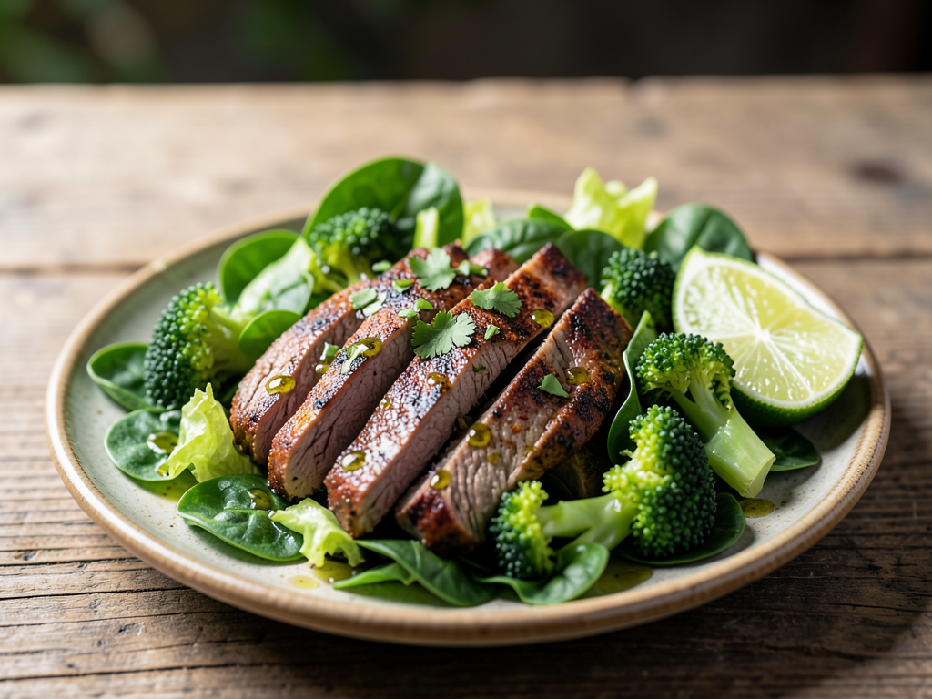 Garlic Paprika Beef Salad with Lettuce and Broccoli