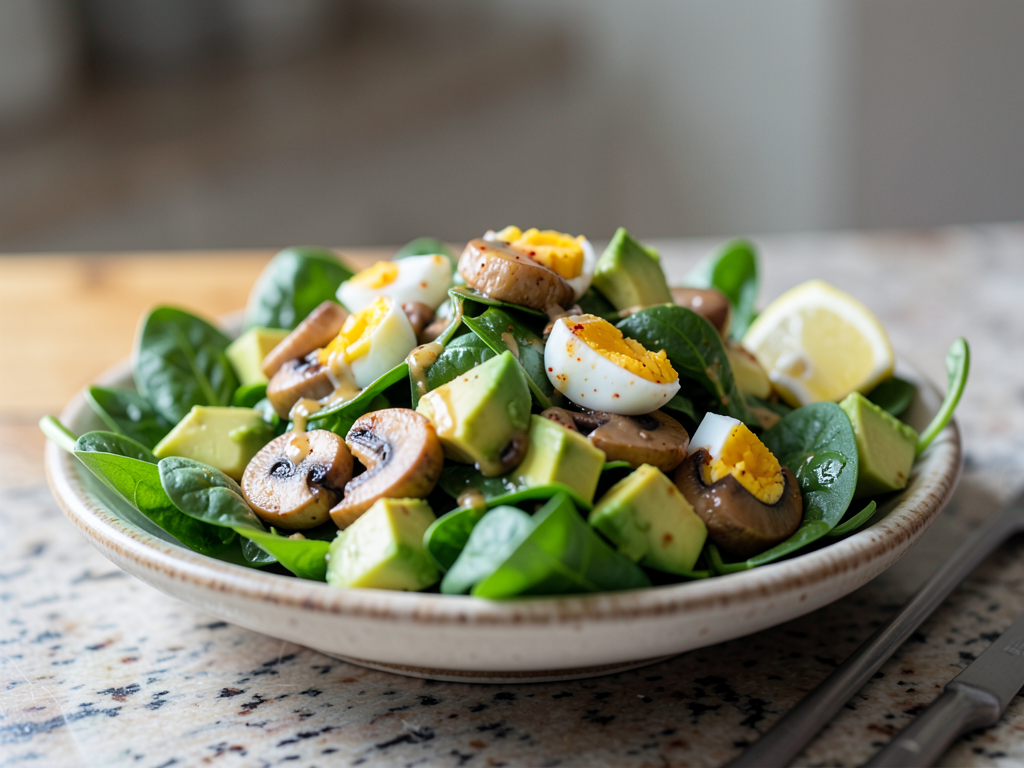 Garlic Paprika Eggs Salad with Mushrooms and Avocado