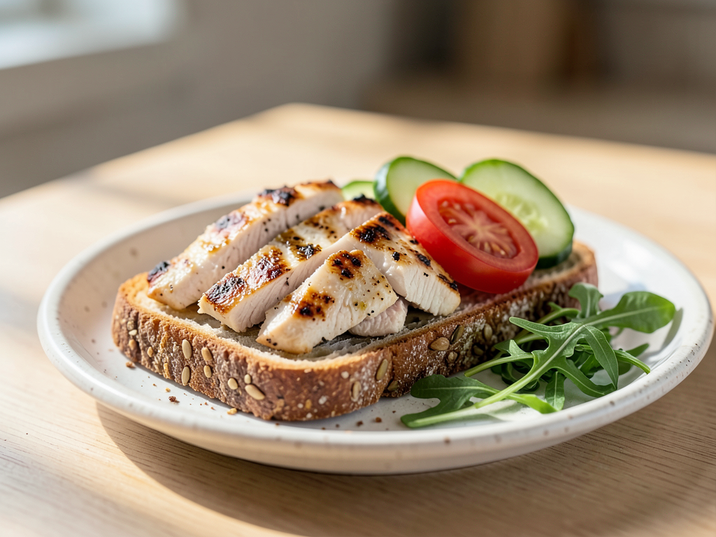 - Toast the Bread: While the chicken is resting, toast the whole grain bread slices until golden brown and crisp in a toaster or under the grill.