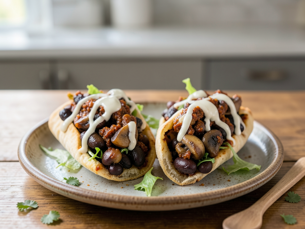Harissa Black Beans Stuffed Pita with Mushrooms