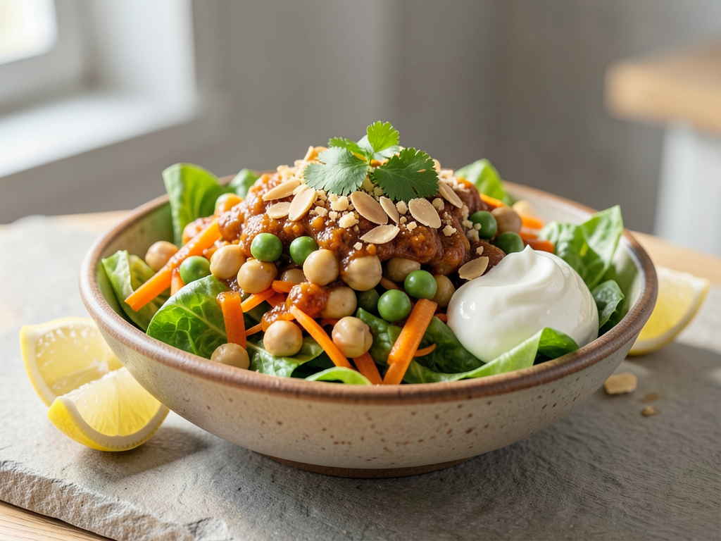 Harissa Chickpeas Salad with Carrots and Peas