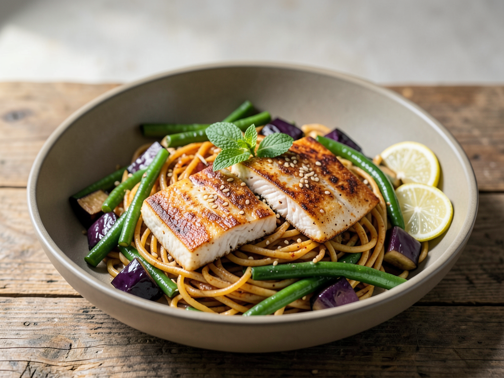 Harissa Cod Buckwheat Noodles Rice Plate