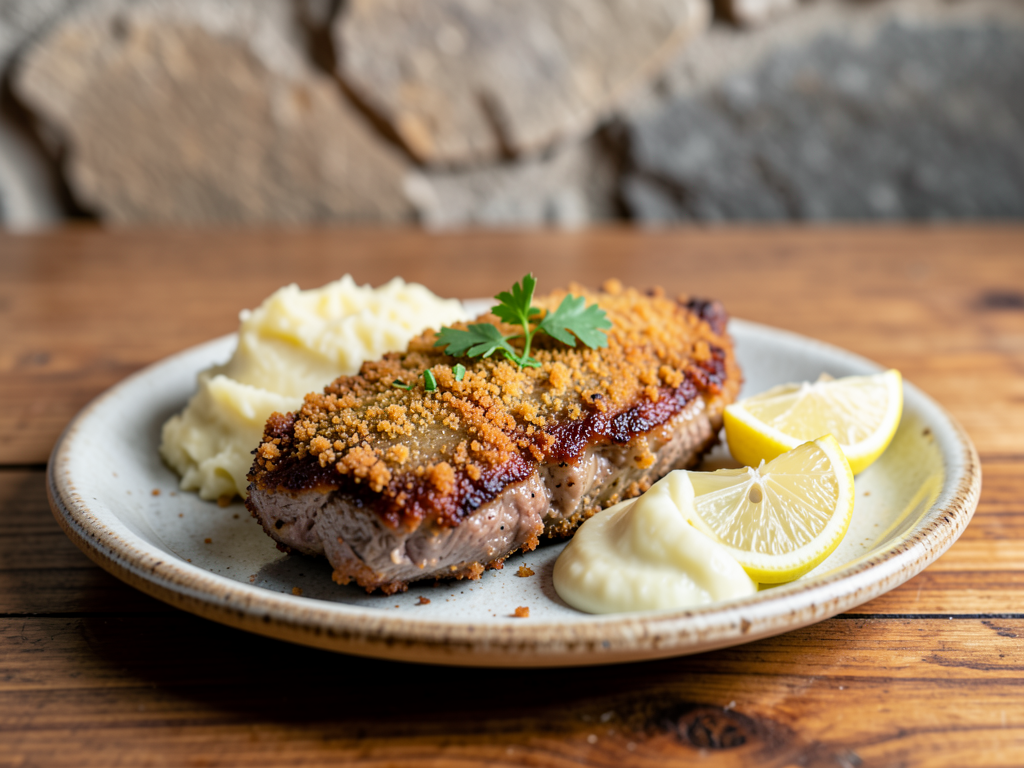 - Plate the Milanesa alongside your choice of sides, such as mashed potatoes, and garnish with fresh parsley and lemon wedges.