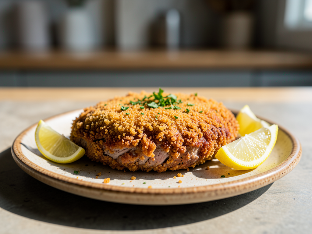 Home-Style Montevideo Milanesa Plate with Lemon Wedges