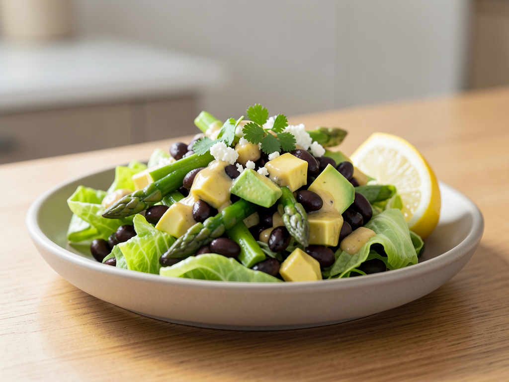 Honey Mustard Black Beans Salad with Avocado and Asparagus