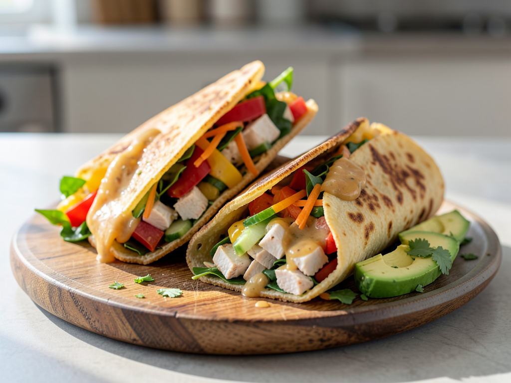 Start your day with our delightful Honey Mustard Breakfast Wrap with Chicken! This warm tortilla wrap is generously filled with tender chicken, crunchy vegetables, and a luscious honey mustard sauce that brings everything together. Whether you enjoy it on the go or as a sit-down breakfast, it's easy to customize with your favorite fillings. Feel free to mix and match the veggies based on what you have on hand. Happy cooking!