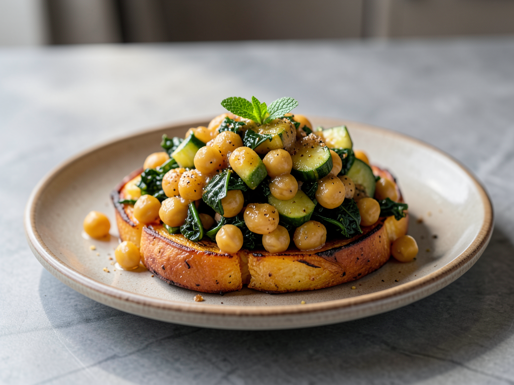 - To serve, create a bed of roasted sweet potatoes on each plate, top with the honey mustard chickpea mixture, and garnish with freshly chopped mint. Enjoy!