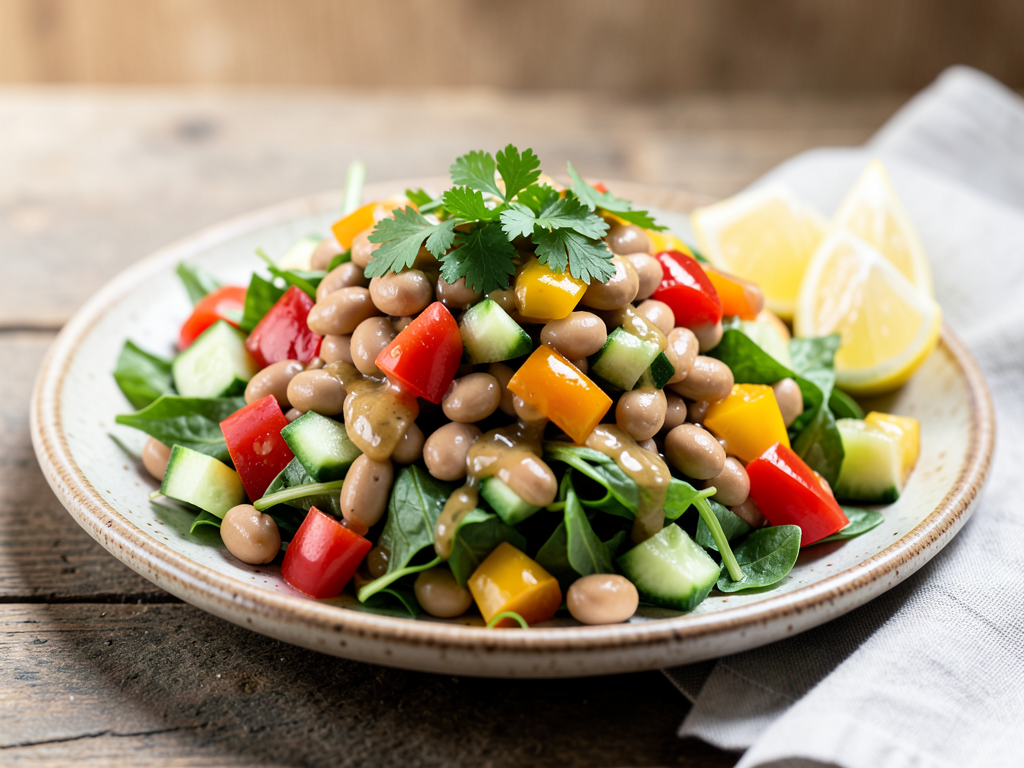 Honey Mustard Kidney Beans Salad with Bell Peppers and Cucumber