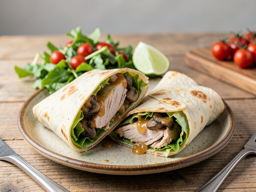 - Lay each tortilla flat, and layer with lettuce. Spoon equal portions of the turkey-mushroom mixture onto each tortilla.