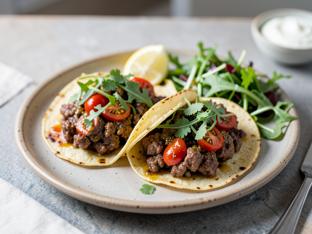 Lemon Herb Beef Tacos with Arugula