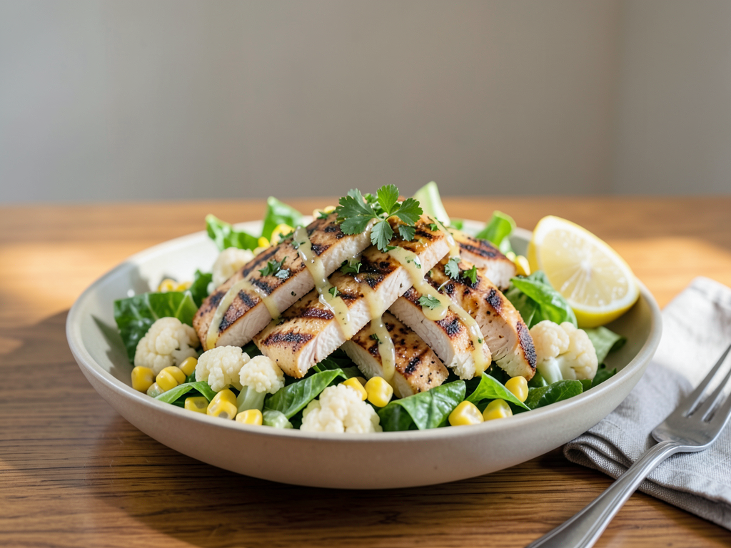 Lemon Herb Chicken Salad with Cauliflower and Corn