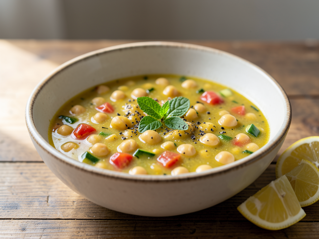 - Incorporate the drained chickpeas and vegetable broth. Bring the mixture to a gentle simmer.