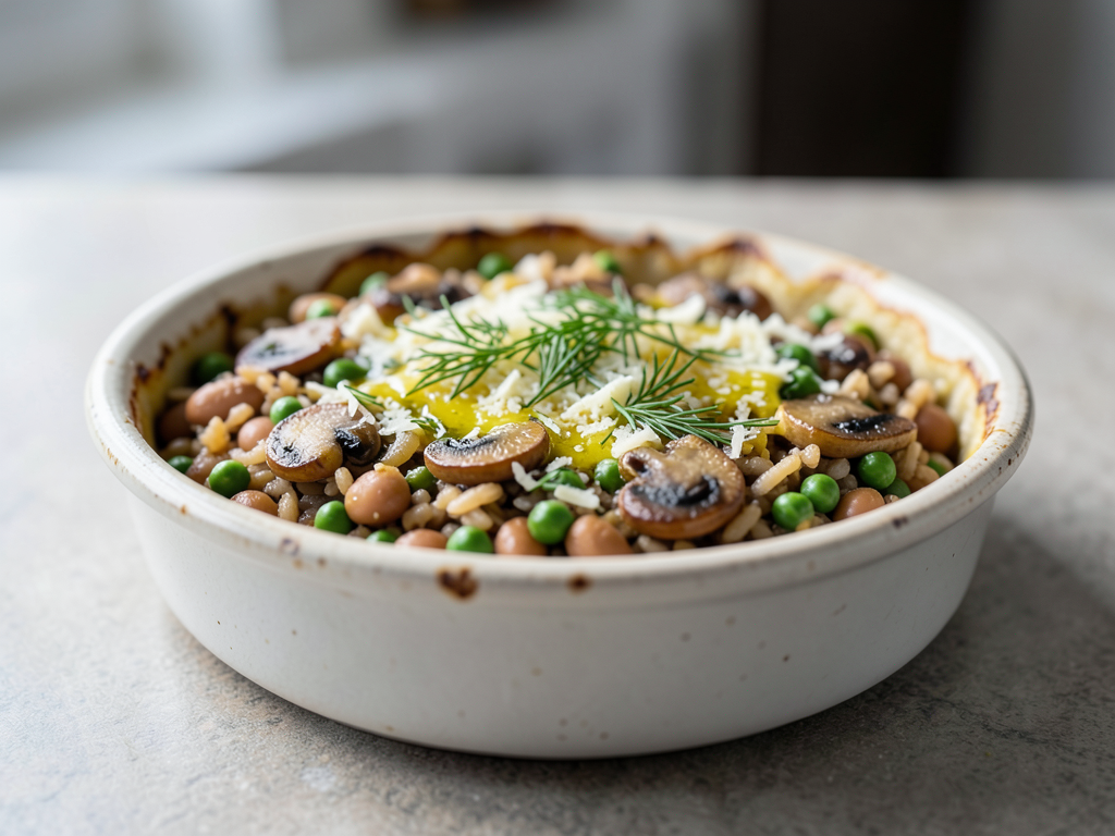 - In a mixing bowl, combine the cooked rice with the bean mixture until evenly mixed. Transfer to a baking dish and smooth the top.