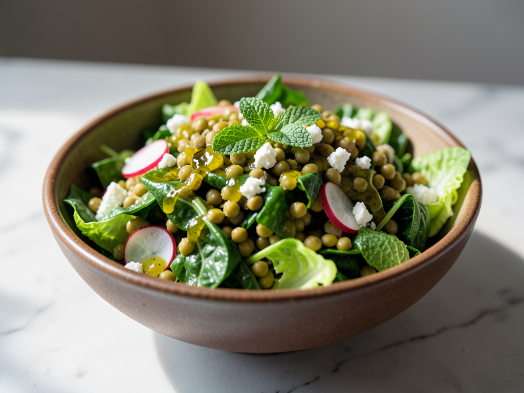 4. Serve: Garnish with the fresh mint leaves and, if desired, radish slices and crumbled feta cheese. Serve with lemon wedges on the side for an extra zesty kick. Let it rest for about 10 minutes before serving to allow the flavors to meld.