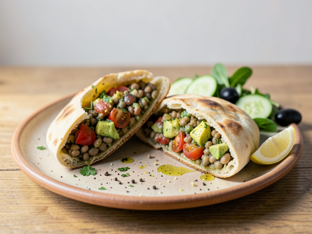 Lemon Herb Lentils Stuffed Pita with Avocado