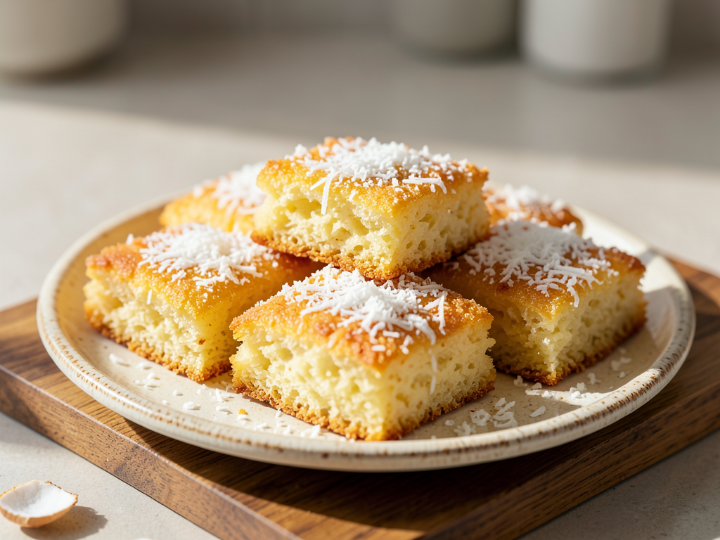 - Add the coconut milk, sugar, egg, and vanilla extract to the dry ingredients, mixing until a smooth dough forms.