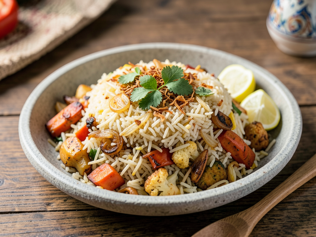 Light Hyderabad Biryani with Roasted Vegetables