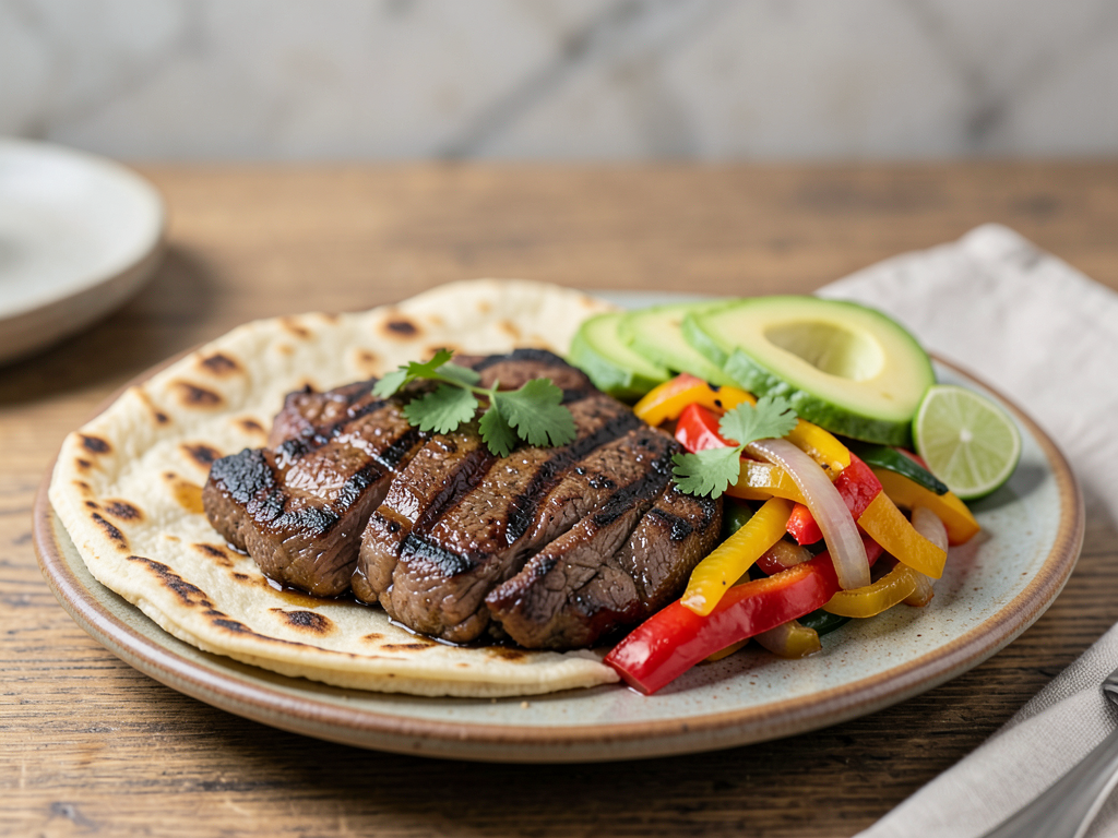 - Slice the grilled meat and arrange it on a plate alongside the flatbread, sautéed vegetables, and any optional toppings you desire.