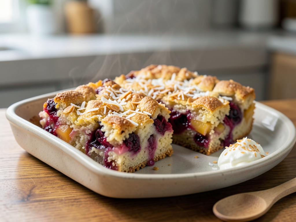 Light Vanilla Bean Fruit Crisp with Coconut Flakes