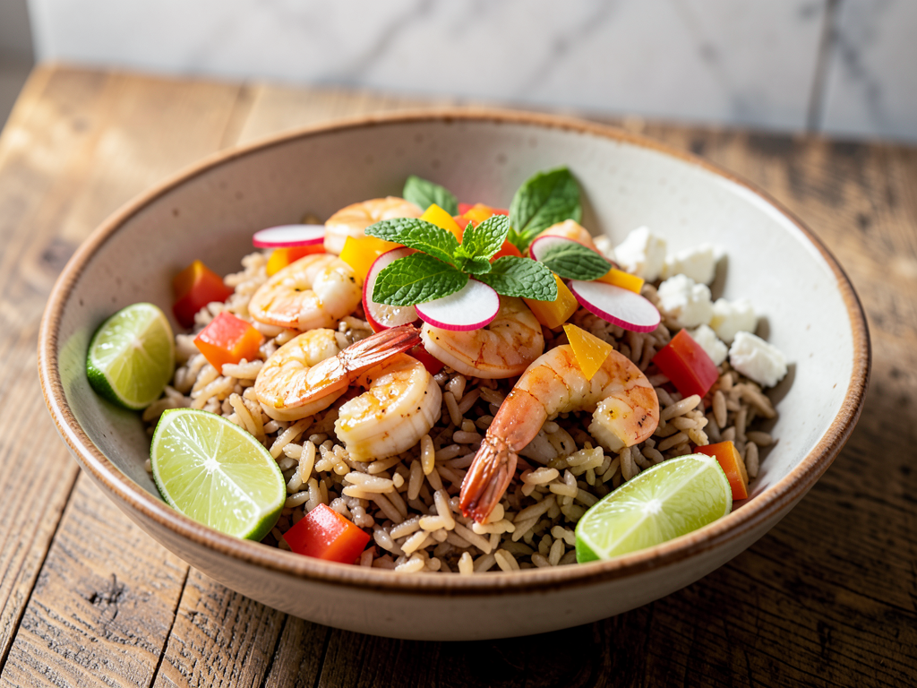 Dive into a vibrant Mediterranean Shrimp Rice Bowl that beautifully combines succulent shrimp with fluffy rice and a rainbow of fresh veggies! You’ll get a delightful crunch from radishes and bell peppers, all brightened up with aromatic fresh mint. This dish is not only colorful but also a low-sodium gem perfect for a nutritious meal. Feel free to get creative by adding your favorite vegetables or herbs for a personal touch!