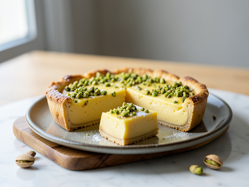 - Let the tart cool for 15 minutes, then garnish with finely chopped pistachios.