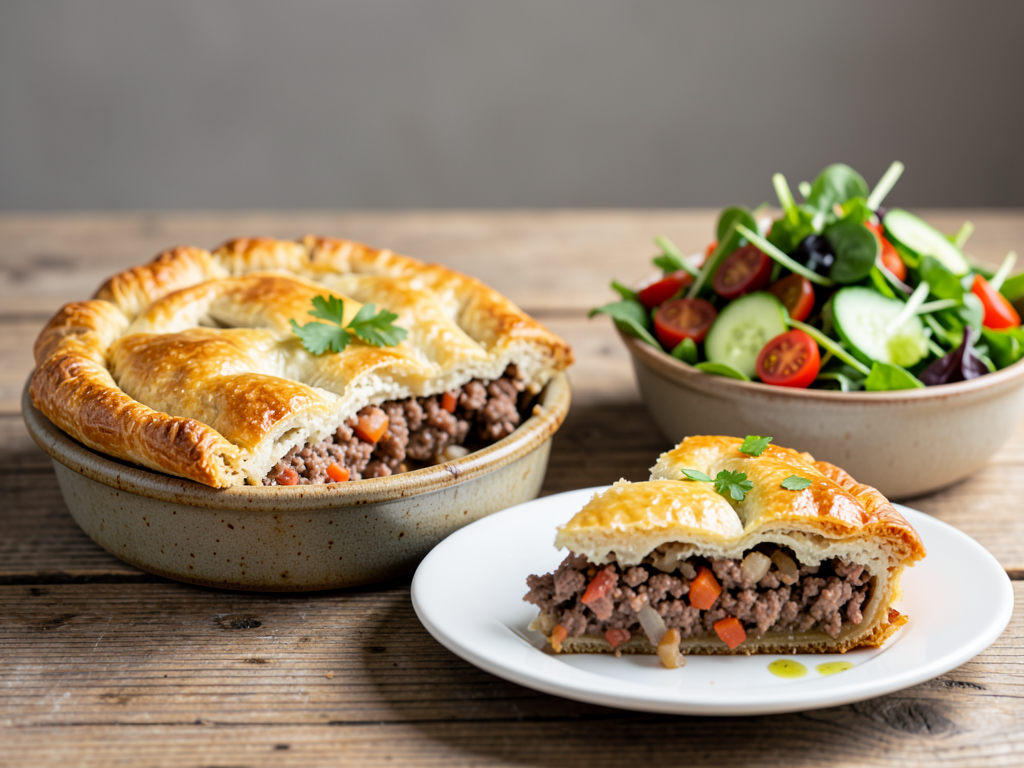 Mild Melbourne Beef Meat Pie With Fresh Salad Recipe