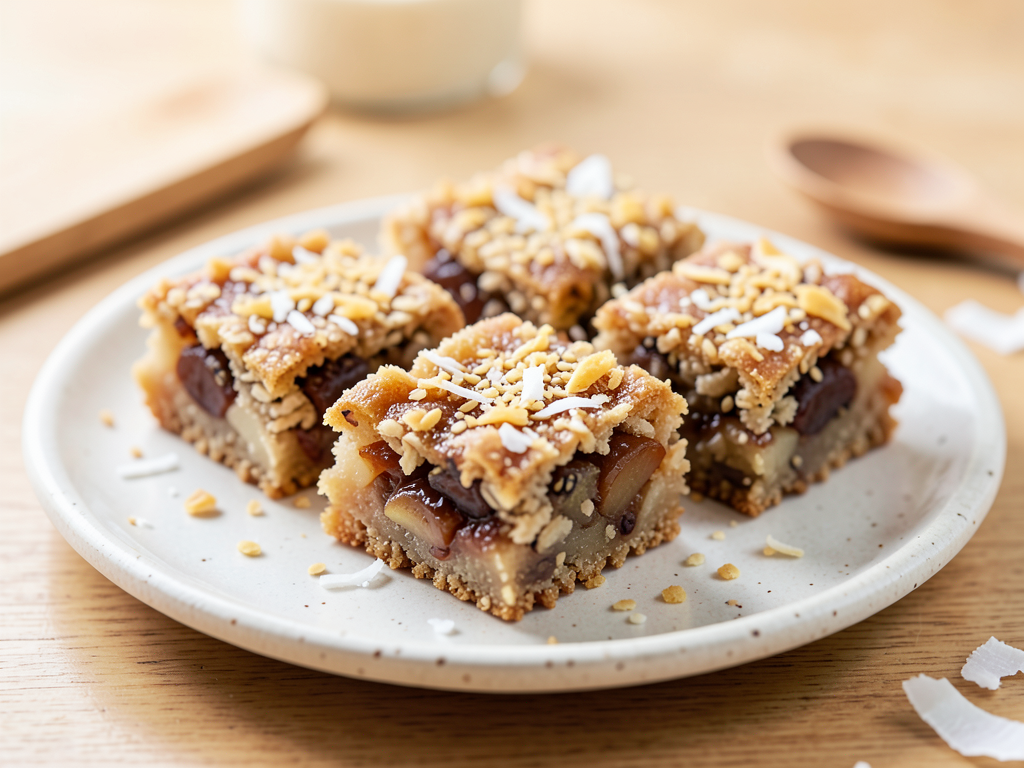 Mini Apple Sesame Date Bars with Coconut Flakes