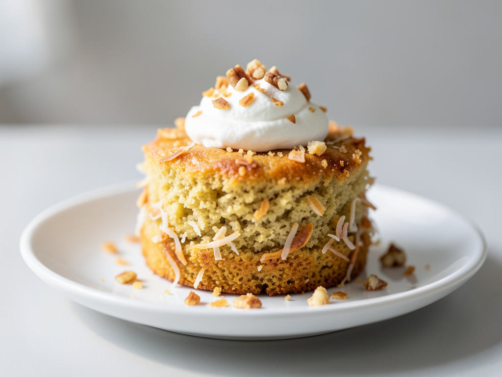 - Once cooled, top with additional coconut flakes and serve with a dollop of whipped cream or a sprinkle of chopped nuts for added texture.